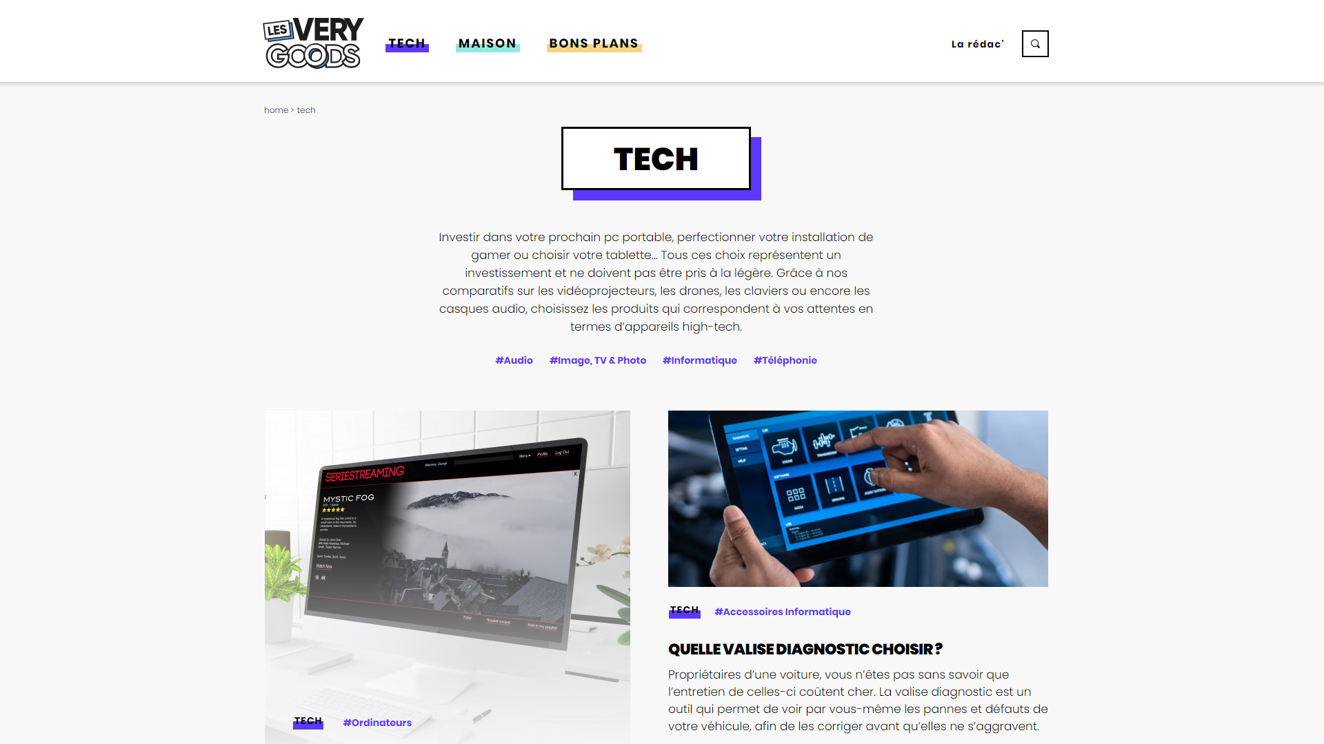 On y trouve des guides d'achat sur deux sujets principaux : la tech et la maison.